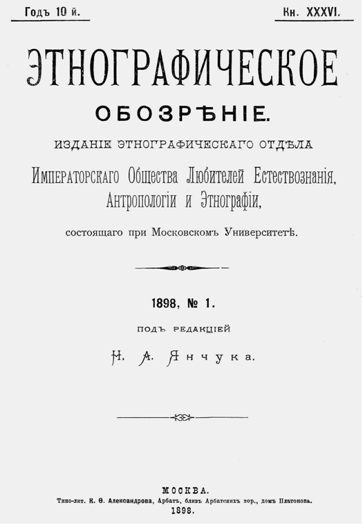 /Этнографическое Обозрѣніе. 1898, № 1. Москва. 1898. С. 101-113./