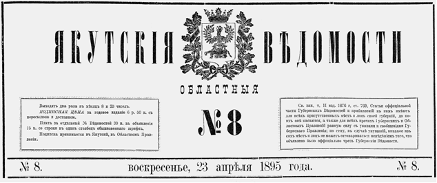 /Якутскія Областныя Вѣдомости. Якутскъ. № 8. 23 апрѣля 1895. С. 3./