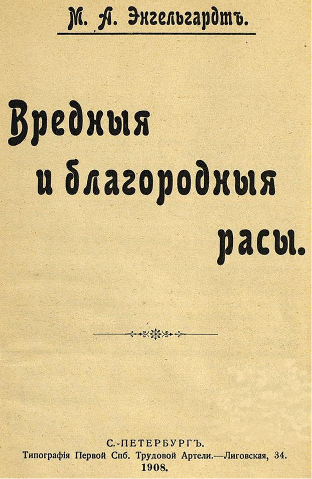 М. А. Энгельгардтъ. Вредныя и благородныя расы. Спб. 1908 Стр. 40. Ц. 15 коп.