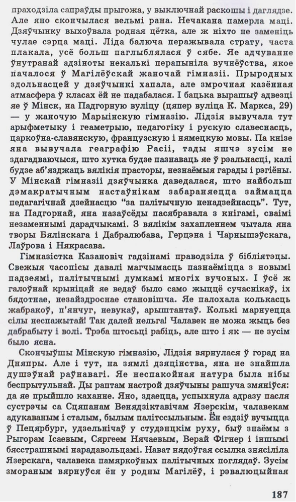 ....Жыцьцё абаяльнай магілеўчанкі Лідзіі Язерскай — захапляючы сюжэт для рамана. Скончыла мінскую гімназію, вучылася ў Пецярбургу, судзілася ў Маскве. А яе ўчынак у Магілёве! Лідзія бачыла дзікія стэпы Забайкальля, нацярпелася ў якуцкай ссылцы, дзе сустракалася з літаратарам Мікалаем Афанасьевым, вучнем У. караленкі. За год да рэвалюцыі памерла яна ў Якуцку, пахавалі яе на ўзьбярэжжы Лены..